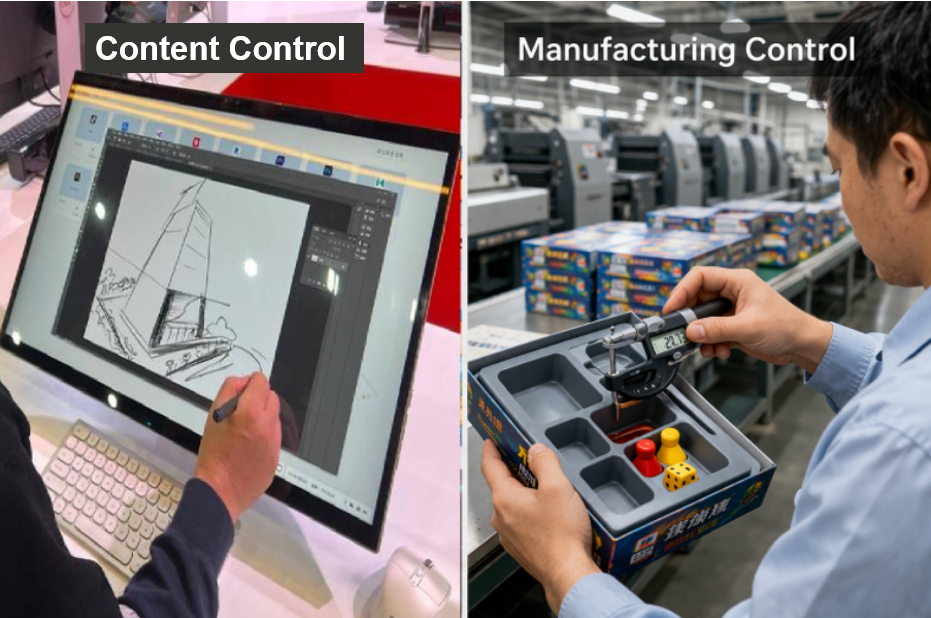 Another mistake is locking packaging artwork before the packed thickness is stable. Card count drift, thicker rulebooks, token bag choices, and board thickness do not sound like large changes, but they can quietly shift the box depth and then hurt carton efficiency later. Designers often optimize how the box looks before confirming whether the packed structure is actually settled. From a manufacturing view, that is backwards.