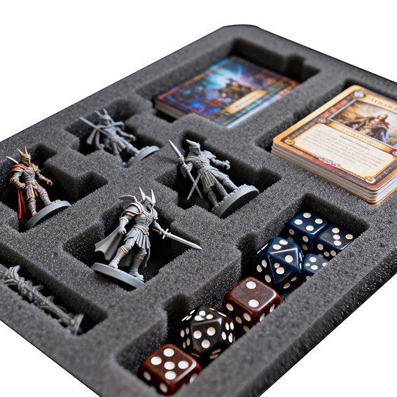 Due to the material thickness required for effective protection, foam inserts occupy more internal volume and carry a higher unit cost than paperboard or molded pulp alternatives. They are most commonly used for Kickstarter all-in tiers and luxury editions where component protection outweighs space efficiency. The closed-cell foam surface minimizes abrasion and surface contact, making it suitable for high-value components that are sensitive to impact or scratching.