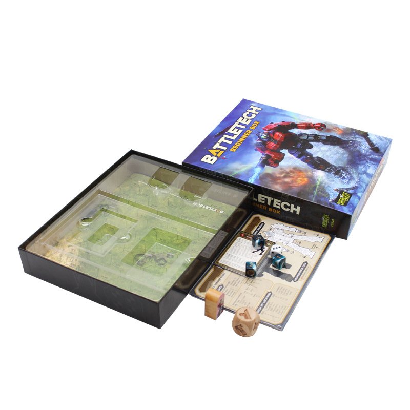 Blister inserts, produced through precision vacuum forming of PVC or PET sheets, are commonly specified for games with a high volume of small or detailed components. Each tray is custom-molded to match the exact geometry of miniatures, dice, and card stacks, creating a secure, snap-fit layout that prevents component movement regardless of box orientation during shipping.